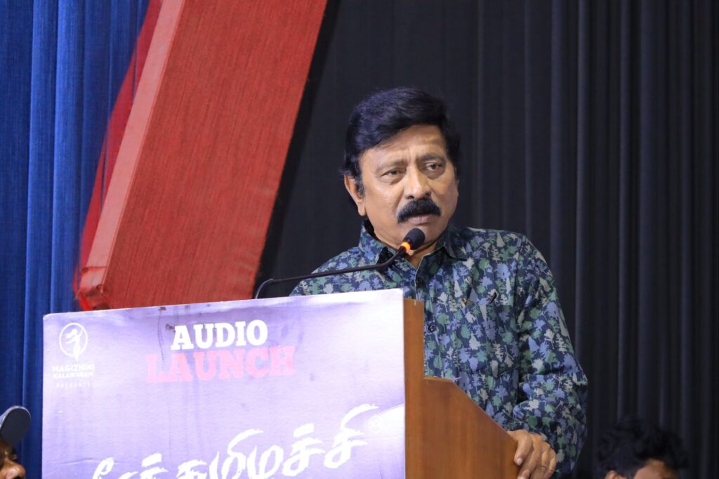 இயக்குநர் ஆர். வி. உதயகுமார் பேசுகையில், தயாரிப்பாளர்கள் நல்லதொரு இயக்குநருக்கு வாய்ப்பளித்திருக்கிறார்கள். கட்டிட தொழிலாளியான இயக்குநரின் கனவை நனவாக்கிய தயாரிப்பாளருக்கு நன்றி. இயக்குநர் கட்டிட தொழிலாளி என்பதால் எந்த கல்லை எங்கு வைக்க வேண்டும், எந்தக் கலவையை எங்கு பூச வேண்டும், ஜன்னலை எங்கு வைக்க வேண்டும், வாசக்காலை எங்கு வைக்க வேண்டும், பெட்ரூம் எப்படி இருக்க வேண்டும், கிச்சன் எப்படி இருக்க வேண்டும், எந்த அகலம்- எந்த நீளம் இருக்க வேண்டும், என்பதை பார்த்து பார்த்து தெரிந்து கொண்டு படைப்பை உருவாக்கி இருக்கிறார் என முன்னோட்டத்தையும், பாடல்களையும் பார்க்கும்போது தெரிகிறது. ஒவ்வொரு இயக்குநரையும் கட்டிட கலைஞருடன் தான் ஒப்பிடுவார்கள். இவர்கள்தான் கதையை எங்கு, எப்படி ஆரம்பிப்பது, எப்படி எடுத்து செல்வது, அந்த கதையில் கதாநாயகனின் பிம்பம் என்ன, கதாநாயகியின் வேலை என்ன, நாம் சொல்லக்கூடிய சாராம்சம் என்ன, இந்த கதையின் முடிச்சு என்ன என ஏராளமான இன்ஜினியரிங் வேலைகளை பார்க்க வேண்டியது ஒரு இயக்குநரின் பொறுப்பு. நானும் ஒரு காலத்தில் மிகச்சிறந்த கட்டிட கலைஞராக இருந்தவன் தான். அதனால் இந்தப் படம் நன்றாக இருக்கும் என மனதார வாழ்த்துகிறேன்.