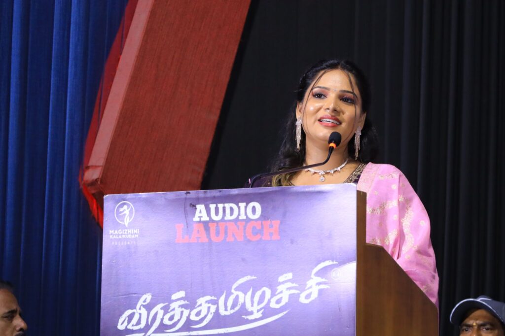 நடிகை சுஷ்மிதா சுரேஷ் பேசுகையில், வீர தமிழச்சியாக என்னை தேர்வு செய்து நடிக்க வாய்ப்பளித்த இயக்குநருக்கும், தயாரிப்பாளருக்கும் மனமார்ந்த நன்றி. இந்தப் படத்தின் சண்டைக் காட்சிகளில் நடிக்கும் போது ஸ்டண்ட் மாஸ்டர் என்னுடைய பாதுகாப்பையும், என்னுடைய சௌகரியத்தையும் மனதில் வைத்து பணியாற்றினார். குறிப்பாக நான் தலைகீழாக தொங்கிக் கொண்டிருக்கும் காட்சியில் நடிக்கும் போது நான் பயந்தேனோ, இல்லையோ அவர் பயந்து கொண்டே இருந்தார். என் மீது அக்கறை செலுத்தி பாதுகாத்த ஸ்டண்ட் மாஸ்டர் மிரட்டல் செல்வாவிற்கு இந்த தருணத்தில் நன்றியை தெரிவித்துக் கொள்கிறேன்.