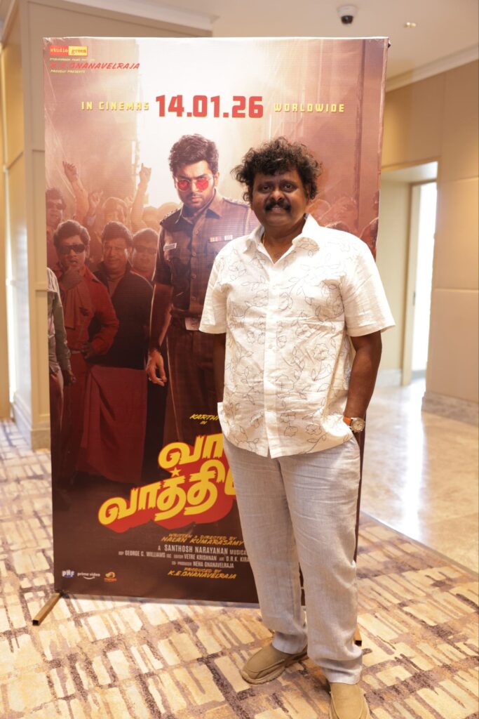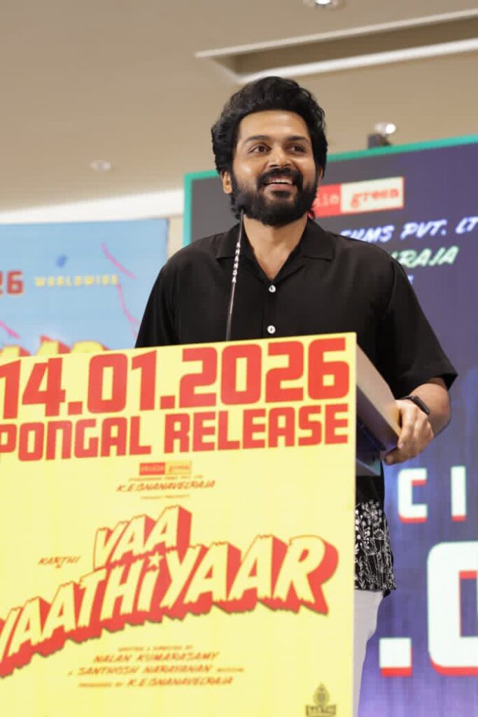 ஸ்டுடியோ கிரீன் நிறுவனம் சார்பில் தயாரிப்பாளர் கே. ஈ. ஞானவேல் ராஜா தயாரிப்பில், நடிகர் கார்த்தி நடிப்பில், இயக்குநர் நலன் குமாரசாமி இயக்கியுள்ள திரைப்படம் “வா வாத்தியார்”. இப்படம் பொங்கல் கொண்டாட்டமாக உலகமெங்கும் ஜனவரி 14 ஆம் தேதி திரைக்கு வரவுள்ள நிலையில், படக்குழுவினர் பத்திரிக்கையாளர்களைச் சந்தித்து படம் குறித்த அனுபவங்களைப் பகிர்ந்து கொண்டனர்.