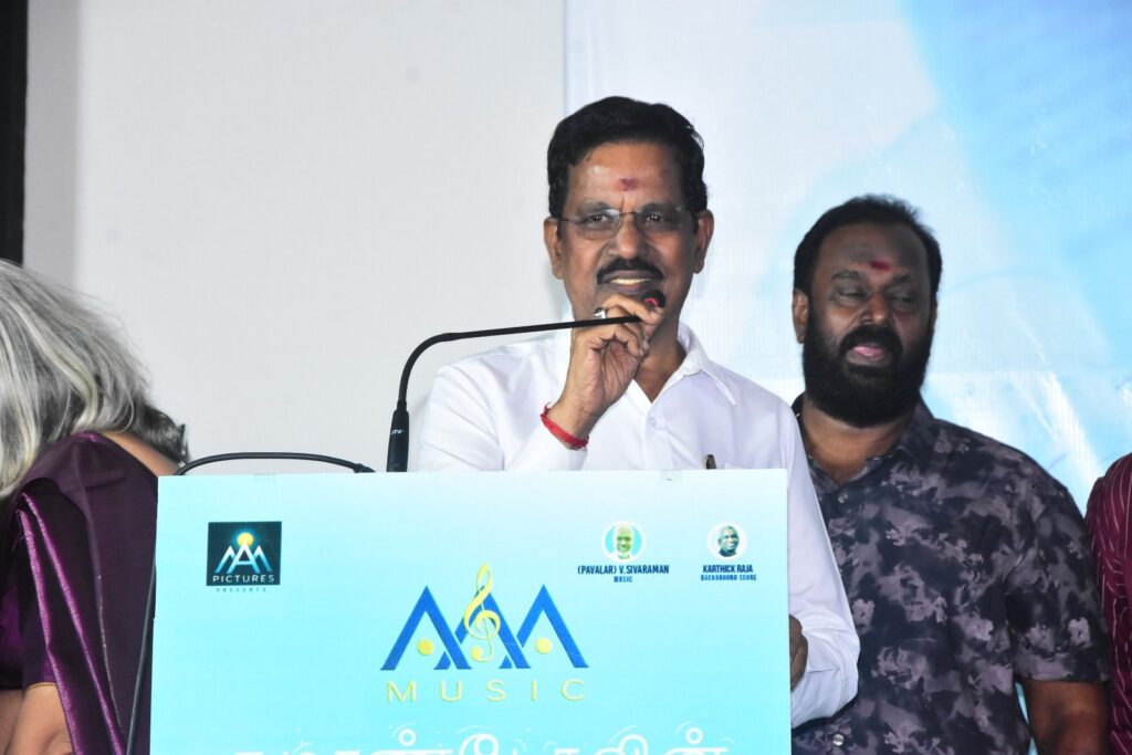 படத்தில் இயக்குநர் கதாநாயகன் வீர அன்பரசு பேசும்போது, படத்திற்கு இசையமைத்துள்ள சிவராமன் எனக்கு 25 ஆண்டுகளாக நண்பர்கள். அவர் பாடல்களுக்கு இசையமைத்தார். பின்னணி இசையை கார்த்திக் ராஜா அவர்களிடம் அமைக்க வேண்டும் என்று கேட்டபோது உடனே ஒப்புக்கொண்டார். எனக்கு மகிழ்ச்சியாக இருந்தது. சம்பளம் பற்றிப் பேசியபோது நான் எதுவும் கேட்கவில்லை. நீங்கள் எது கொடுத்தாலும் வாங்கிக் கொள்கிறேன் என்றார். முதல் நாள் இரவு படத்தில் ஒரு பாடல் வேண்டும் என்று கேட்டபோது, இரவு 8 மணிக்கு கேட்கிறேன். வீடு சென்று படுத்து தூங்கி எழுந்தால் காலை 8 மணிக்கு அவர் போன் செய்தார். இரவோடு இரவாக பாடலை கம்போஸ் செய்து பாட வைத்து காலையில் போட்டுக் காட்டினார். நான் பிரமித்துப் போய் விட்டேன். அவர் ஒரு மேஜிக்கல்மேன் தான். அவரை பலரும் தவறவிடுகிறார்கள்.